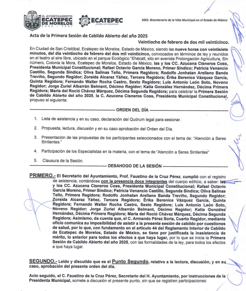 1° Sesión de Cabildo AbiertoEcatepec de Morelos28 febrero, 2025Sesiones Cabildo 10.- 1° Sesión de Cabildo Abierto 28 de Febrero del 2025