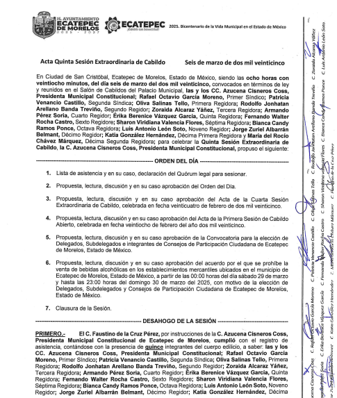 5° Sesión Extraordinaria de CabildoEcatepec de Morelos6 marzo, 2025Sesiones Cabildo 11.- 5° Sesión Extraordinaria de Cabildo 6 de Marzo del 2025