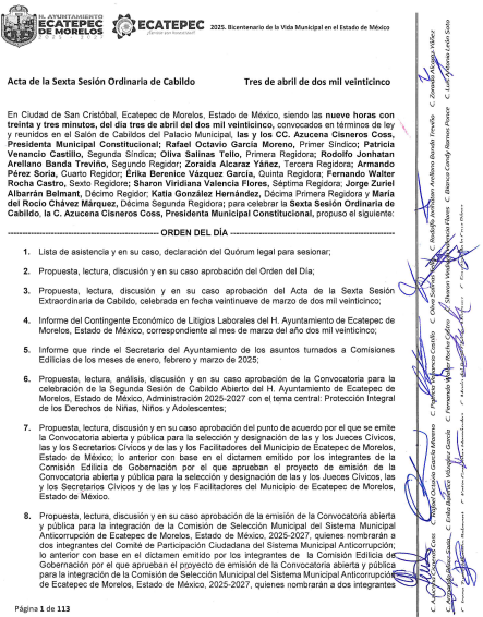 6° Sesión OrdinariaEcatepec de Morelos3 abril, 2025Sesiones Cabildo 15.- 6° Sesión Ordinaria 03 de Abril del 2025