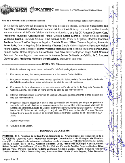 9° Sesión Ordinaria de CabildoEcatepec de Morelos8 mayo, 2025Sesiones Cabildo 20.- 9° SESIÓN ORDINARIA DE CABILDO DE FECHA 08 DE MAYO DE 2025.